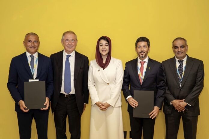 ووقع الاتفاقية حسن النقبي، الرئيس التنفيذي لشركة خزنة، وجيدو بروسكو، الرئيس التنفيذي للعمليات في قطاع الموارد الطبيعية العالمية والمدير العام لشركة إيني” بحضور ريم الهاشمي، وزيرة الدولة للتعاون الدولي في الإمارات و أدولفو أورسو، وزير العمل و صنع في إيطاليا.