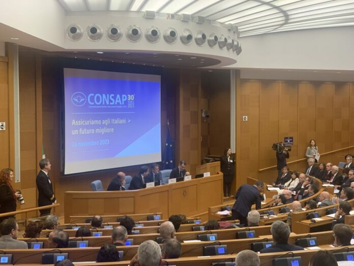 Nel corso dell’evento anche due messaggi del premier, Giorgia Meloni, e del ministro dell’Economia, Giancarlo Giorgetti, che hanno ribadito il loro sostegno a Consap.