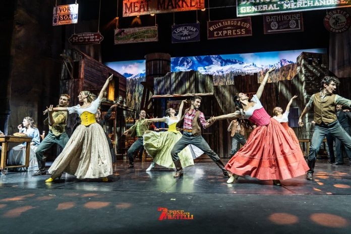 Uno dei titoli di musical più amati dal pubblico italiano, tratto dall’omonimo film prodotto da MGM e diretto da Stanley Donen, ha debuttato nel gennaio 2022 e può vantare in un solo anno quasi tutti sold out nei maggiori teatri italiani dove è stato rappresentato, riscuotendo un importantissimo successo di botteghino e di critica, muovendo in totale circa 100.000 spettatori. Fabrizio di Fiore Entertainment & FdF GAT e la regia di Luciano Cannito portano in scena una nuova e divertentissima edizione, ispirata al celebre film di Hollywood, con uno sguardo ai personaggi ed alle ambientazioni del mondo ironico dei western di Quentin Tarantino. Il grande impianto scenografico firmato da Italo Grassi, le luci di Alessandro Caso e i meravigliosi costumi di Silvia Aymonino sono stati progettati e creati secondo i canoni estetici e spettacolari di Broadway e di West End. Un cast di 22 interpreti e la direzione musicale di Peppe Vessicchio.