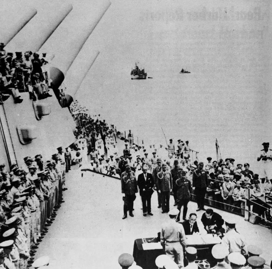 La cerimonia di firma si tenne a Nanchino il 9 settembre 1945. Yasuji Okamura, allora comandante in capo dell’Esercito di spedizione giapponese in Cina, consegnò alla Cina l’Atto di resa ufficiale del Giappone. Sette giorni prima, sulla USS Missouri, una nave da guerra statunitense ancorata nella baia di Tokyo, l’allora ministro giapponese degli Esteri Mamoru Shigemitsu aveva già firmato la resa del Giappone agli Alleati, inclusa la Cina.