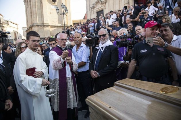 MILITELLO IN VAL DI CATANIA (ITALPRESS) – Una folla di oltre 3 mila persone si è radunata nella piazza antistante il Santuario di Santa Maria della Stella di Militello in Val di Catania e nelle vie limitrofe, per dare l’ultimo saluto a Pippo Baudo. Di seguito ecco, in una fotogallery, alcuni degli scatti più significativi delle esequie.