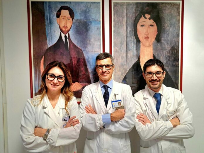 – foto ufficio stampa Fondazione Policlinico Universitario Agostino Gemelli IRCCS, da sinistra Maria Letizia Vita, Stefano Margaritora e Mauro Iafrancesco –