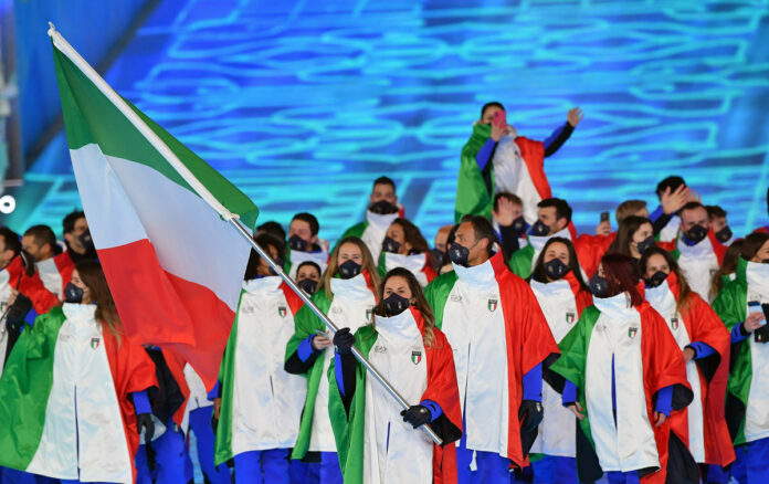 L’Italia ha sfilato come 90esima (su 91 delegazioni), guidata da Michela Moioli, campionessa olimpica in carica nello snowboardcross e nominata portabandiera – lo sarebbe stata alla cerimonia di chiusura – al posto dell’infortunata Sofia Goggia, attesa in Cina nei prossimi giorni. Assieme alla lombarda hanno sfilato circa 50 azzurri in rappresentanza di curling, pattinaggio di figura, sci alpino, short track, skeleton, snowboard e speed skating, e 6 officials, guidati dal capo missione e segretario generale del Coni, Carlo Mornati.