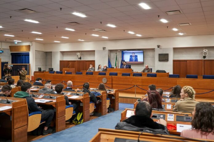 NAPOLI (ITALPRESS) – Turismo e cultura; Trasporti, mobilità e opere pubbliche; Agricoltura, ambiente e aree interne: Politiche sociali e giovanili: sono i gruppi di lavoro composti dai giovani campani che, stamani, nell’Aula del Consiglio Regionale della Campania, hanno partecipato a “Lexstart! La prima legge regionale scritta dai giovani”, l’iniziativa promossa dal consigliere regionale del gruppo Campania Libera-Noi Campania-Psi, Andrea Volpe, Questore alle Finanze del Consiglio Regionale della Campania, per avvicinare i giovani alle Istituzioni, sviluppare il senso civico e favorire la partecipazione democratica.