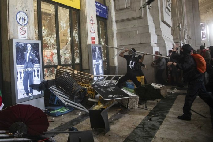 Momenti di tensione a Milano fin da questa mattina, durante il corteo, quando un gruppo di giovani ha cercato di entrare nella Stazione Centrale ed è venuto a contatto con la polizia. I manifestanti, dopo aver divelto uno dei cancelli di accesso alla Stazione Centrale, sono arrivati a contatto con la Polizia. Dopo una momentanea ritirata degli agenti in tenuta antisommossa, una frangia di violenti ha utilizzato cartelli stradali, cestini e transenne per rompere vetrine e porte di accesso alla stazione. Immediata però la reazione della Polizia che ha costretto i manifestanti ad indietreggiare.