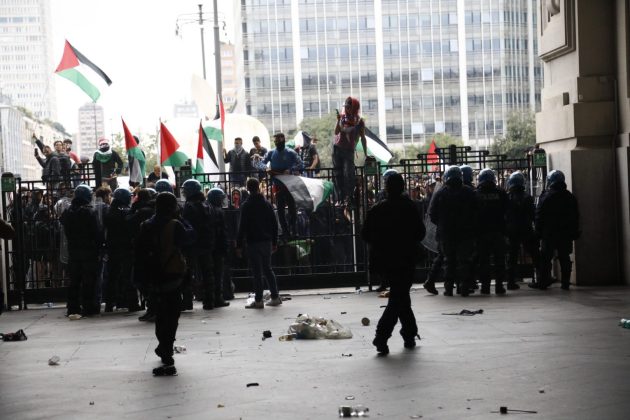 La situazione è poi tornata tranquilla dopo momenti di tensioni e scontri con le forze dell’ordine nelle ore precedenti, e non si sono registrati ulteriori incidenti. Pur restando schierate, le forze dell’ordine si sono limitate a monitorare la situazione ed ad impedire l’accesso su Piazza Duca d’Aosta. I manifestanti invece battevano solo le mani, sventolando bandiere della Palestina e gridando slogan in solidarietà alla popolazione di Gaza.