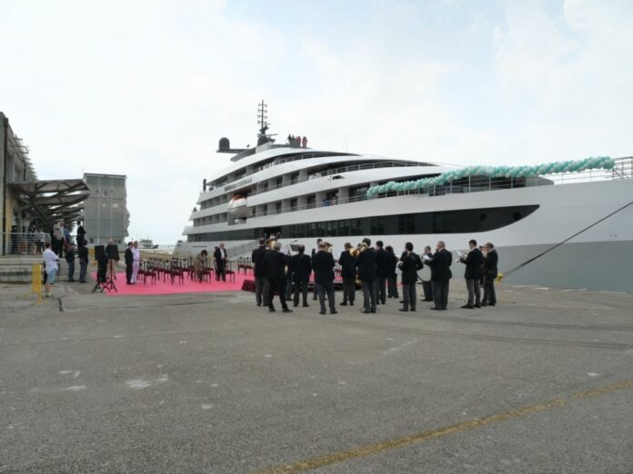 VENEZIA (ITALPRESS) – Alla Stazione marittima di Venezia, battesimo dell’acqua, con la sua prima crociera, che toccherà Croazia, Grecia e Turchia, per “Emerald azzurra”, il primo yacht di lusso oceanico della flotta della “Emerald Cruises”, composta sinora da nove imbarcazioni per le crociere fluviali. Alla cerimonia ha presenziato, tra gli altri, in rappresentanza della Città, l’assessore comunale al Turismo. La “Emerald azzurra”, che può ospitare un centinaio di passeggeri, sarà presto affiancata da un’altra barca quasi gemella: la “Emerald Sakara”.