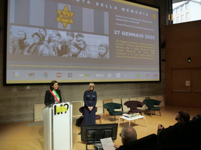 VENEZIA (ITALPRESS) – La presidente del Consiglio comunale di Venezia, Ermelinda Damiano, è intervenuta questa mattina all’Auditorium Cesare De Michelis del Museo M9 alla mattinata dedicata alle scuole e intitolata “Letture e testimonianze”, in occasione dell’80. anniversario della liberazione di Aushwitz grazie all’intervento delle truppe sovietiche dell’Armata Rossa. La manifestazione, che si inserisce nel calendario di appuntamenti per il Giorno della Memoria 2025 organizzato dalla Presidenza del Consiglio comunale di Venezia, è stato un viaggio tra storia, testimonianze e letture, offerto alla cittadinanza dall’associazione Mestre Mia e dagli studenti dei Licei Luigi Stefanini di Mestre e Marco Polo di Venezia e dell’Istituto comprensivo Caio Giulio Cesare di Mestre. Hanno collaborato l’Università Ca’ Foscari, le associazioni Figli della Shoah e Voci di Carta, il centro Studi Danza Riviera del Brenta, il giornalista e storico Edoardo Pittalis. Presenti anche consiglieri comunali e di Municipalità.