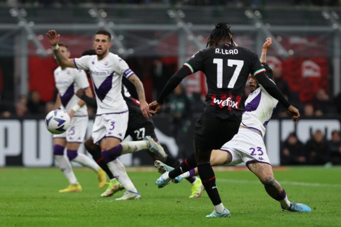 MILANO (ITALPRESS) – Come contro lo Spezia e l’Empoli, il Milan centra i 3 punti in pieno recupero, superando per 2-1 una Fiorentina molto vivace. E’ una sfortunata autorete di Milenkovic a regalare la vittoria ai rossoneri, passati in vantaggio in avvio, grazie a Leao, e poi raggiunti momentaneamente dai viola, col gol di Barak. Un pomeriggio che si apre con il saluto della Curva Sud all’ormai ex amministratore delegato Ivan Gazidis, omaggiato con applausi, cori e uno striscione, che il 5 dicembre lascerà il posto a Giorgio Furlani. I padroni di casa partono bene e dopo 90 secondi vanno a segno. Tomori va centralmente su Giroud che si inventa una grande sponda di prima mandando in porta Leao, che con il piatto destro infila Terracciano. La viola risponde subito e sfiora il pari un minuto dopo quando Mandragora si infila servendo dentro Cabral con il rimpallo che arriva di fatto addosso a Tatarusanu che si salva con il ginocchio. I campioni d’Italia in carica si distraggono e all’8′ si salvano quando Biraghi coglie il palo al termine di una ripartenza ben condotta da Barak. Gli uomini di Italiano trovano il meritato pareggio al 28′ quando Barak recupera palla in area dopo una serie di rimpalli e calcia con il sinistro trovando il gol dopo la decisiva deviazione di Thiaw.