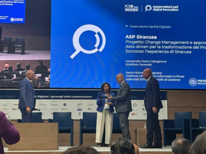MILANO (ITALPRESS) – L’ASP di Siracusa è stata insignita del prestigioso Premio “Innovazione Digitale in Sanità 2025” indetto dagli Osservatori Digital Innovation della School of Management del Politecnico di Milano, con il progetto “Change Management e approccio data-driven per la trasformazione del Pronto Soccorso: l’esperienza di Siracusa”.