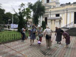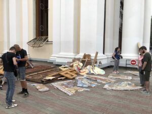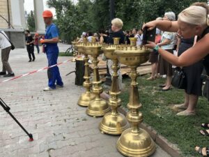 Con la luce del giorno una folla di abitanti di Odessa si é raccolta intorno al monumento per osservare la ferita arrecata alla cittá. Tra loro, gente che normalmente non vanno in chiesa durante le feste religiose, ma che comunque sentono la cattedrale come parte integrante della cittá.