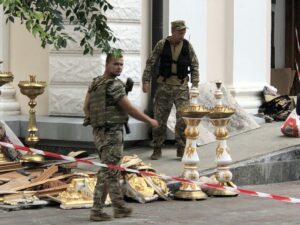 Odessa da diversi giorni é sotto costanti attacchi notturni di missili e droni russi, che hanno giá distrutto edifici della zona del porto. Durante l’attacco delle prime ore del mattino del 23 Luglio, un missile ad alto potenziale esplosivo ha centrato il tetto dell’edificio religioso piú importante della cittá e distruggendo internamente il sanctuarium, la parte della chiesa riservata ai sacerdoti.
