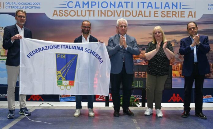 CAGLIARI (ITALPRESS) – L’edizione 2025 dei Campionati Italiani Assoluti di scherma si terrà a Bari. La quarta giornata della rassegna tricolore in corso di svolgimento a Cagliari ha sancito il momento del passaggio di consegne tra il capoluogo sardo e quello pugliese. Gli Assoluti tornano dunque a Bari a 27 anni di distanza dall’ultima volta, nel maggio del 1998. La cerimonia del passaggio della bandiera della Federazione Italiana Scherma ha visto Ariana Melis, presidente del Comitato Organizzatore Locale, e Gianmarco Tavolacci, Delegato Regionale FIS Sardegna, riconsegnare il vessillo nelle mani del Presidente federale Paolo Azzi, il quale l’ha a sua volta affidato ad Andrea Vernaleone, Presidente del Comitato Organizzatore dei Campionati Italiani Assoluti Bari 2025, affiancato dal numero uno del Comitato Regionale Federscherma Puglia, Roberto Lippolis. Bari che nel corso di questa stagione è tornata ad ospitare gare nazionali, sarà dunque la casa della prima rassegna tricolore del venturo quadriennio olimpico. “Nel ringraziare il Comitato di Cagliari per il grande lavoro svolto – ha detto il Presidente della Federazione Italiana Scherma, Paolo Azzi – sono certo che la professionalità, l’impegno e la passione dell’organizzazione cagliaritana saranno messi in campo anche dagli amici di Bari: il capoluogo pugliese, con la sua importante tradizione schermistica, ha offerto una proposta di qualità al nostro Consiglio Federale e con la consegna della bandiera della FIS inizia ufficialmente il lavoro per i Campionati Italiani di Bari 2025”.
