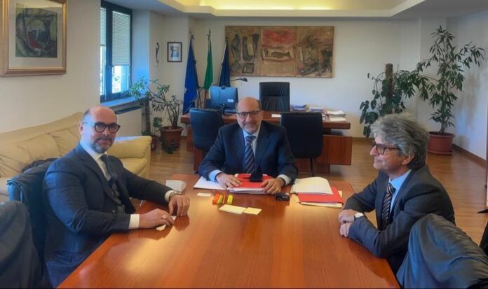 POTENZA (ITALPRESS) – L’assessore all’Ambiente e all’Energia della Regione Basilicata Cosimo Latronico ha incontrato oggi il nuovo commissario dell’Ente per lo sviluppo dell’Irrigazione e la trasformazione fondiaria in Puglia, Lucania e Irpinia Provincia di Bari, Luigi Giuseppe Decollanz. Al centro dell’incontro, cui ha partecipato da remoto anche il presidente della Regione, Vito Bardi, la strategia di rilancio delle attività dell’Ente, strategico per la valorizzazione della risorsa idrica lucana, l’incremento della capacità degli invasi lucani, la valorizzazione dei bacini ai fini energetici, e il rafforzamento degli schemi idrici. “Come ha detto oggi il presidente Bardi, l’acqua è la cifra identitaria della Basilicata. Dobbiamo recuperare il tempo perduto, valorizzare il nostro oro blu, la risorsa più importante della Basilicata e portare benefici tangibili alle imprese e alle famiglie lucane, così come già abbiamo fatto per il gas. Mi farò personalmente promotore di un incontro a breve con Francesco Lollobrigida, ministro dell’Agricoltura e della Sovranità alimentare nel governo Meloni, per convenire un rilancio della governance al fine di tutelare gli interessi e le specificità della Basilicata”, afferma a margine Latronico.(ITALPRESS).
