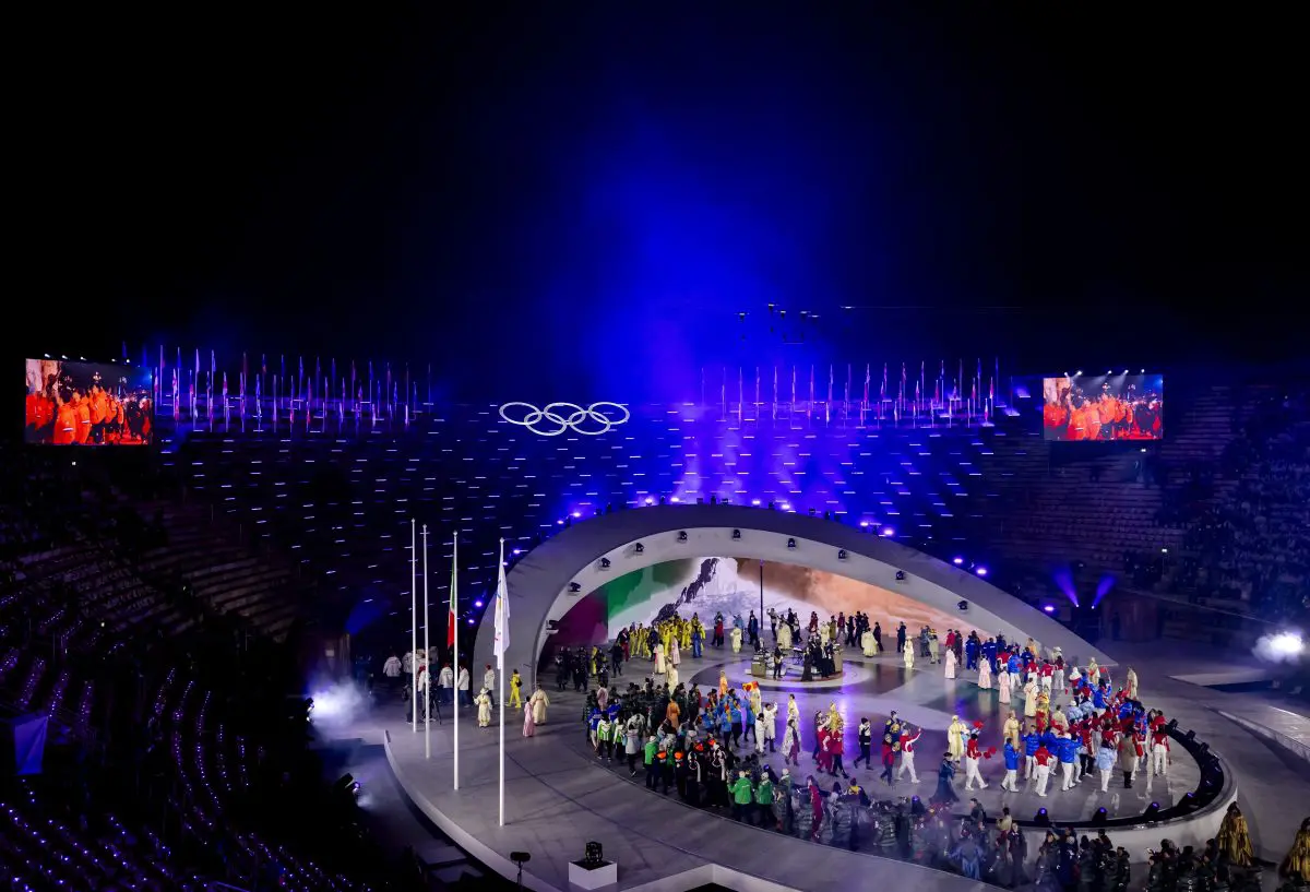 VERONA (ITALPRESS) – “Beauty in action”. Il titolo era di per sé eloquente e la cerimonia di chiusura delle Olimpiadi di Milano-Cortina 2026 non ha deluso. La cornice era quella, iconica, dell’Arena di Verona: il più antico anfiteatro al mondo, la casa dell’opera lirica. Opera che ha subito fatto capolino nel segmento iniziale, come trait d’union tra Verona e le Olimpiadi. Un omaggio all’Italia, preludio all’ingresso del tricolore, che viene innalzato con una prima sorpresa: l’ingresso dei medagliati azzurri a Milano-Cortina 2026, che assistono all’inno di Mameli sotto gli occhi delle istituzioni. Presenti la premier Giorgia Meloni, il presidente del Senato Ignazio La Russa e quello della Camera Lorenzo Fontana. Entra in scena anche la fiamma olimpica, racchiusa dentro una goccia di vetro di Murano e portata dai quattro staffettisti d’oro di Lillehammer 1994: Maurilio De Zolt, Marco Albarello, Giorgio Vanzetta e Silvio Fauner. Si tratta del preludio alla parata degli atleti, anticipati dai rispettivi portabandiera: per l’Italia ci sono Lisa Vittozzi e Davide Ghiotto, oro rispettivamente nell’inseguimento del biathlon e del pattinaggio di velocità.