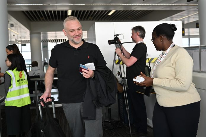 BRUXELLES (BELGIO) (XINHUA/ITALPRESS) – Un passeggero si prepara a imbarcarsi sul volo inaugurale diretto da Bruxelles a Pechino operato da Air China presso l’aeroporto di Bruxelles, nell’omonima città in Belgio, il 24 marzo 2026. La compagnia aerea cinese Air China ha inaugurato ieri un collegamento passeggeri diretto tra Bruxelles e Pechino, capitale della Cina, e domani ne inaugurerà un altro tra Bruxelles e Chengdu, capoluogo della provincia sud-occidentale cinese del Sichuan, aggiungendo nuovi collegamenti aerei tra Belgio e Cina.