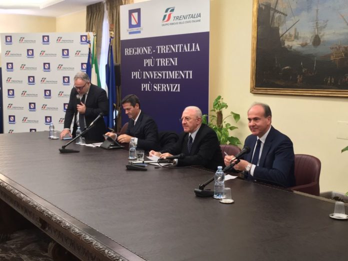 “La firma del contratto di servizio tra la Regione Campania e Trenitalia è un atto importante che arriva al termine di uno sforzo enorme per il risanamento finanziario della Regione. Nel contratto sono previsti investimenti per 681 milioni, di cui 180 della Regione. Senza gli investimenti della Regione e i soggetti da noi coinvolti oggi avremmo una crisi drammatica. Grazie all’accordo si amplia il servizio a 10,5 milioni di treni/km all’anno previsti, con un aumento di 400mila km nel 2020”. Così il presidente della Regione Campania, Vincenzo De Luca, a margine della presentazione della firma del contratto di servizio tra la Regione e Trenitalia a palazzo Santa Lucia. Circa 680 milioni di euro di investimenti, 37 nuovi treni (25 Rock e 12 a media capacità) e il rinnovo della flotta regionale entro il 2025 con la consegna del primo convoglio nel 2020.