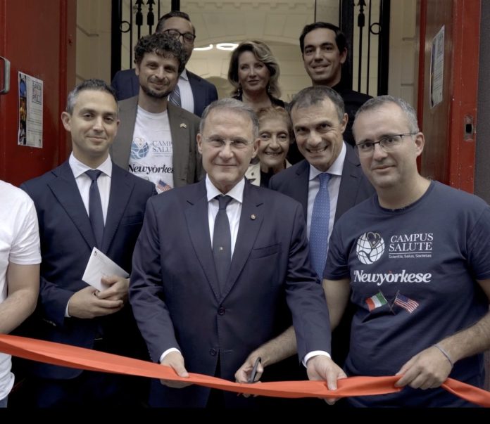 NEW YORK (STATI UNITI) (ITALPRESS) – La settimana newyorkese di Campus Salute, il progetto italiano che unisce prevenzione, volontariato e partecipazione civica, si è aperta ufficialmente con il taglio del nastro alla Scuola d’Italia Guglielmo Marconi, con il Vice Ministro degli Esteri Edmondo Cirielli, il Console Generale d’Italia a New York Fabrizio Di Michele, la Vice Segretario Generale per i Paesi Anglofoni extraeuropei del CGIE Silvana Mangione, il Presidente di Campus Salute Pasquale Antonio Riccio, il Presidente di IARL Davide Ippolito, la Vicepresidente del Consiglio Superiore di Sanità Annamaria Colao, il fondatore e presidente della GrowTogether Foundation Don Luigi Portarulo e il CEO e Head of School della Scuola d’Italia Michael Cascianelli.