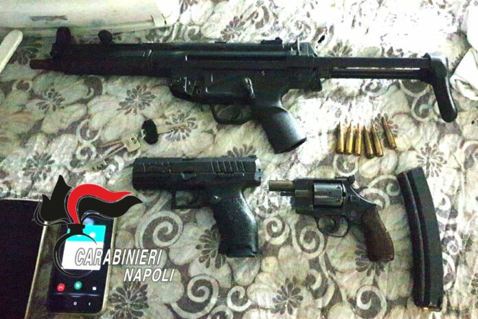 NAPOLI (ITALPRESS) – I carabinieri della stazione di Boscoreale (Na) hanno scoperto un arsenale all’interno di un garage di via Sardoncelli e arrestato il proprietario M.P. di 48 anni e il 42enne D.A., entrambi già noti alle forze dell’ordine. Nel corso della perquisizione i militarii hanno rinvenuto e sequestrato una pistola arminius calibro 38 special con matricola abrasa e carica di colpi che D.A. nascondeva sotto la maglia. Trovate poi una pistola mitragliatrice MP5 calibro 9 con il caricatore pieno di 24 proiettili, una pistola Walther ppx calibro 9 con matricola abrasa carica di 7 proiettili nel serbatoio, una pistola Glock calibro 9, anche questa con matricola abrasa, con 15 proiettili nel caricatore. Ritrovati anche 2 ordigni esplosivi artigianali dal peso di 140 grammi ciascuno. Sequestrati anche una pistola a salve e 204 proiettili di vario calibro e 169 grammi di cocaina.