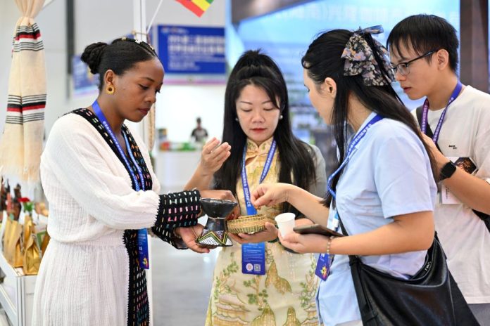 HAIKOU (CINA) (ITALPRESS/XINHUA) – Alcuni espositori presentano chicchi di caffè etiope ai visitatori alla terza Esposizione internazionale della catena di approvvigionamento del settore alimentare tropicale di Hainan a Haikou, nella provincia meridionale cinese di Hainan, il 17 ottobre 2025. Incentrata sui materiali alimentari tropicali globali, l’esposizione ha attirato la partecipazione di numerosi marchi nazionali e internazionali.