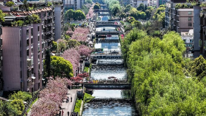 LIUPANSHUI (CINA) (XINHUA/ITALPRESS) – Una foto aerea, scattata da un drone il 3 aprile 2026, mostra i fiori di ciliegio lungo il fiume Shuicheng a Liupanshui, nella provincia sud-occidentale cinese del Guizhou. I boccioli di ciliegio lungo il fiume sono in piena fioritura, attirando numerose persone per gite primaverili. Negli ultimi anni la città ha valorizzato i ciliegi lungo il fiume per ampliare l’industria legata all’osservazione dei fiori, liberando il potenziale dei consumi di mercato grazie ai suoi paesaggi naturali.