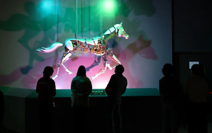 SHANGHAI (CINA) (XINHUA/ITALPRESS) – Dei visitatori osservano un cavallo meccanico esposto alla mostra “Meraviglie al galoppo: mostra scientifica e culturale dedicata all’Anno del Cavallo” allo Shanghai Science & Technology Museum, nella Cina orientale, il 10 febbraio 2026. La mostra è stata inaugurata martedì, ed è stata organizzata congiuntamente dal museo di Shanghai e dal museo del Palazzo.