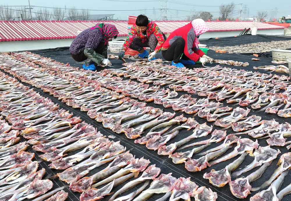 SHIJIAZHUANG (CINA) (XINHUA/ITALPRESS) – Una foto, scattata da un drone il 30 novembre 2025, mostra gli abitanti del posto mentre essiccano il pesce nella cittadina di Heiyanzi, nel distretto di Fengnan, città di Tangshan, nella provincia settentrionale cinese dello Hebei. I pescatori approfittano del bel tempo per lavorare ed essiccare pesce, gamberi e altri prodotti di mare per rifornire il mercato.