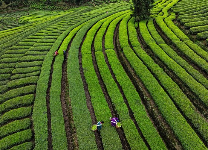 PECHINO (CINA) (XINHUA/ITALPRESS) – Dei contadini raccolgono foglie di tè in una piantagione di tè nella contea di Muchuan, città di Leshan, nella provincia sud-occidentale cinese del Sichuan, il 15 marzo 2026. Nella maggior parte delle aree della Cina meridionale, questa pianta è entrata nella stagione della raccolta. I contadini sono impegnati a raccogliere e a lavorare il tè per soddisfare la domanda di mercato.