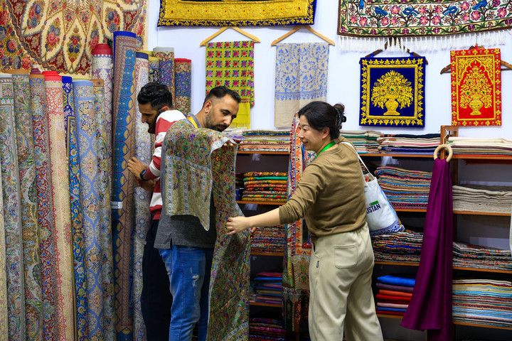 SHANGHAI (CINA) (ITALPRESS/XINHUA) – Una visitatrice (a destra) si informa sui prodotti presso lo stand di tappeti del Pakistan nell’area dedicata ai beni di consumo durante l’ottava China International Import Expo (CIIE) a Shanghai, nella Cina orientale, l’8 novembre 2025. Nell’area dedicata ai beni di consumo dell’ottava CIIE, sono stati messi in grande evidenza abbigliamento, prodotti chimici di uso quotidiano, articoli per la casa e prodotti culturali e sportivi, riflettendo le tendenze globali dei consumi e il miglioramento della qualità della vita.