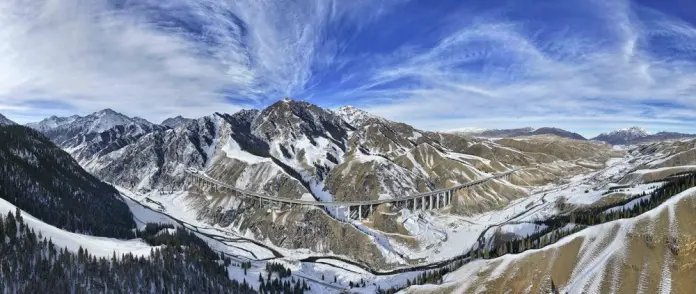 URUMQI (CINA) (XINHUA/ITALPRESS) – Questa foto panoramica aerea, scattata il 20 dicembre 2025, mostra una veduta dell’autostrada Urumqi-Yuli che attraversa i monti Tianshan nella regione autonoma uigura dello Xinjiang, nella Cina nord-occidentale. Il tunnel Tianshan Shengli, il più lungo tunnel autostradale del mondo, e l’autostrada Urumqi-Yuli, che attraversa i monti Tianshan tramite il tunnel, saranno aperti al traffico entro la fine dell’anno, creando un nuovo collegamento rapido tra le parti settentrionale e meridionale dello Xinjiang. Il tunnel, lungo 22,13 chilometri, ridurrà il tempo di percorrenza attraverso la sezione centrale dei monti Tianshan da diverse ore a circa 20 minuti.