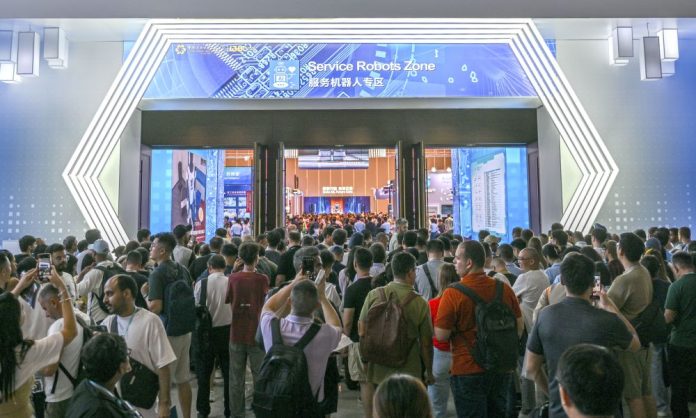 GUANGZHOU (CINA) (ITALPRESS/XINHUA) – Questa foto scattata il 15 ottobre 2025 mostra un ingresso all’area dei robot di servizio durante la 138ma edizione della Fiera di importazione ed esportazione della Cina (Fiera di Canton) a Guangzhou, nella provincia meridionale cinese del Guangdong, il 15 ottobre 2025. La 138ma edizione della Fiera di Canton è iniziata mercoledì. Essa ospita un’area dei robot di servizio dove vengono mostrate innovazioni all’avanguardia, inclusi robot umanoidi, esoscheletri robotici, robot sferici di pattugliamento, robot fotovoltaici per la pulizia, robot educativi e altro ancora.