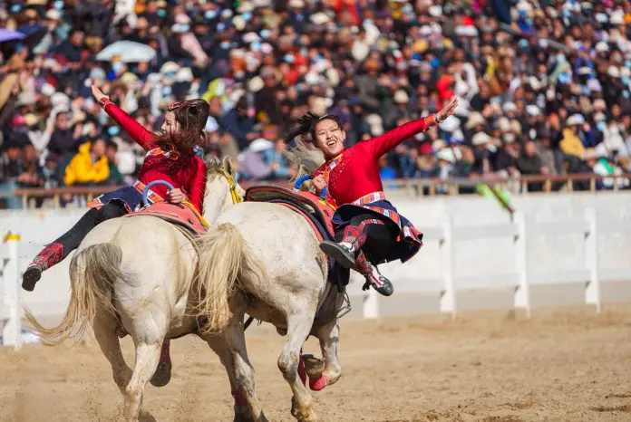Cina: artisti equestri si esibiscono a Lhasa in occasione del Capodanno tibetano (1)