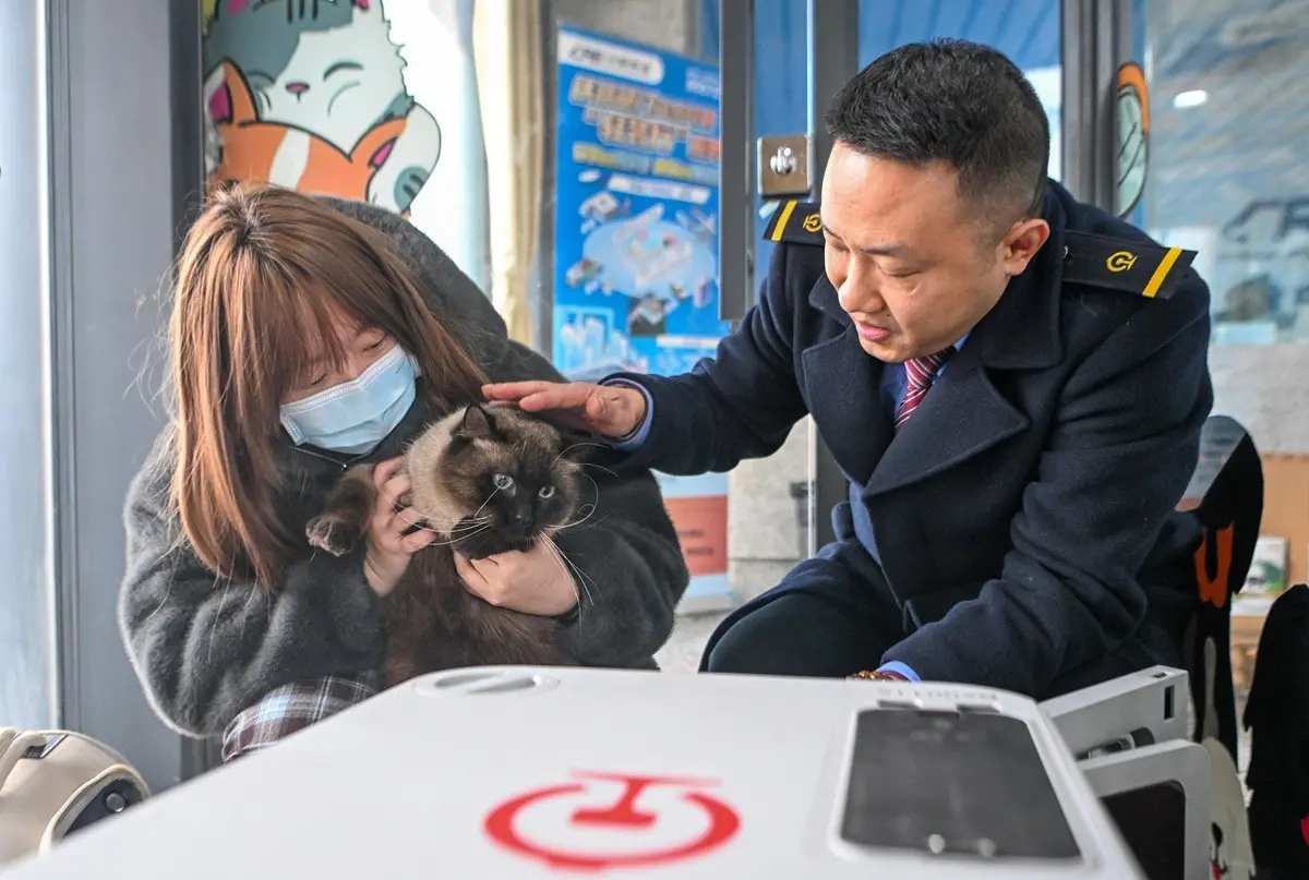 CHONGQING (CINA) (XINHUA/ITALPRESS) – Una passeggera sistema il proprio animale domestico in un trasportino per animali a Chongqing, municipalità della Cina sud-occidentale, il 9 febbraio 2026. Le autorità ferroviarie di Chongqing hanno inaugurato un servizio pilota di trasporto di animali domestici su tratte designate dei treni ad alta velocità durante il picco di viaggi in corso per la Festa di primavera. I passeggeri possono prenotare il servizio in anticipo tramite 12306, la piattaforma di prenotazione di China Railway, per gli animali domestici idonei. Questi ultimi viaggiano in trasportini dedicati dotati di sistemi di ricircolo d’aria e di monitoraggio della temperatura e dell’umidità.