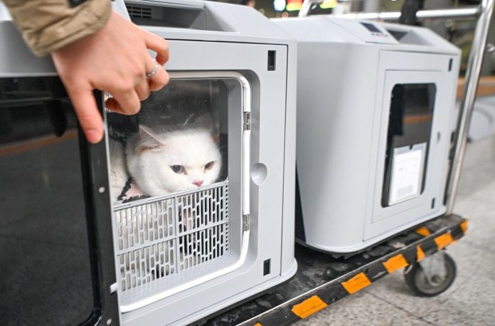 CHONGQING (CINA) (XINHUA/ITALPRESS) – Alcuni trasportini per animali domestici fotografati su una banchina della stazione ferroviaria di Chongqing Ovest, nella municipalità della Cina sud-occidentale, il 9 febbraio 2026. Le autorità ferroviarie di Chongqing hanno inaugurato un servizio pilota di trasporto di animali domestici su tratte designate dei treni ad alta velocità durante il picco di viaggi in corso per la Festa di primavera. I passeggeri possono prenotare il servizio in anticipo tramite 12306, la piattaforma di prenotazione di China Railway, per gli animali domestici idonei. Questi ultimi viaggiano in trasportini dedicati dotati di sistemi di ricircolo d’aria e di monitoraggio della temperatura e dell’umidità.