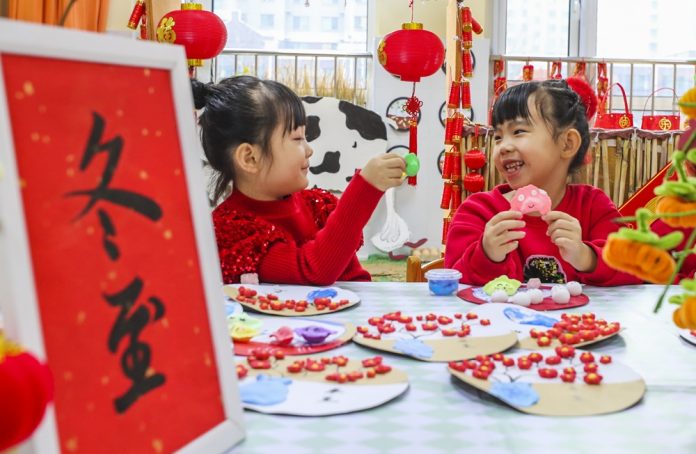 PECHINO (CINA) (XINHUA/ITALPRESS) – I bambini di un asilo realizzano lavoretti a forma di ravioli nella città di Tangshan, nella provincia settentrionale cinese dello Hebei, il 18 dicembre 2025. Le persone in tutto il Paese giovedì hanno organizzato diversi eventi per celebrare il Solstizio d’Inverno, che quest’anno cadrà il 21 dicembre. Il Solstizio d’Inverno, il giorno più corto dell’anno, segna l’inizio del pieno inverno e, nella cultura cinese, un periodo di pausa dal lavoro nei campi nella tradizionale società agricola. Nel nord della Cina si mantiene la tradizione di mangiare ravioli in questa giornata, mentre nel sud le persone consumano i tangyuan (delle polpette di riso glutinoso).