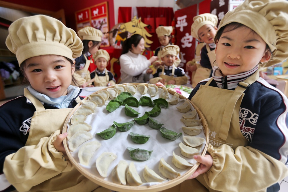 PECHINO (CINA) (XINHUA/ITALPRESS) – Dei bambini mostrano i ravioli appena preparati con l’aiuto degli insegnanti in un asilo nella città di Lianyungang, nella provincia orientale cinese del Jiangsu, il 18 dicembre 2025. Le persone in tutto il Paese giovedì hanno organizzato diversi eventi per celebrare il Solstizio d’Inverno, che quest’anno cadrà il 21 dicembre. Il Solstizio d’Inverno, il giorno più corto dell’anno, segna l’inizio del pieno inverno e, nella cultura cinese, un periodo di pausa dal lavoro nei campi nella tradizionale società agricola. Nel nord della Cina si mantiene la tradizione di mangiare ravioli in questa giornata, mentre nel sud le persone consumano i tangyuan (delle polpette di riso glutinoso).