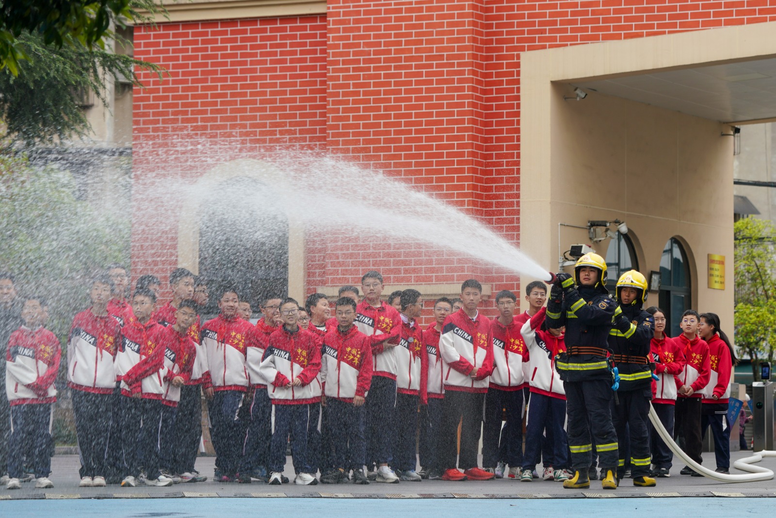 PECHINO (CINA) (XINHUA/ITALPRESS) – Dei vigili del fuoco mostrano come utilizzare la lancia antincendio agli studenti di una scuola media della città di Meishan, nella provincia sud-occidentale cinese del Sichuan, il 30 marzo 2026. In questo giorno si celebra la Giornata nazionale dell’educazione alla sicurezza in Cina per gli studenti delle scuole primarie e secondarie.