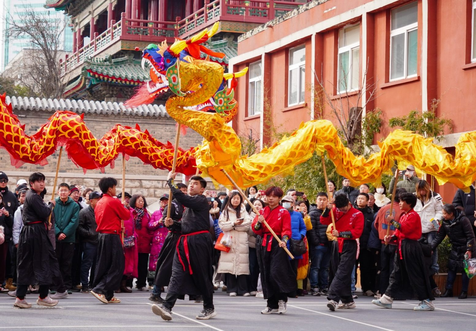 PECHINO (CINA) (XINHUA/ITALPRESS) – Degli artisti si esibiscono nella danza del drago in una strada di Jinan, nella provincia orientale cinese dello Shandong, il 10 febbraio 2026. Martedì si sono svolti vari tipi di attività per celebrare il tradizionale Festival cinese di Xiaonian nel nord della Cina, che segna l’inizio del conto alla rovescia verso la Festa di primavera.