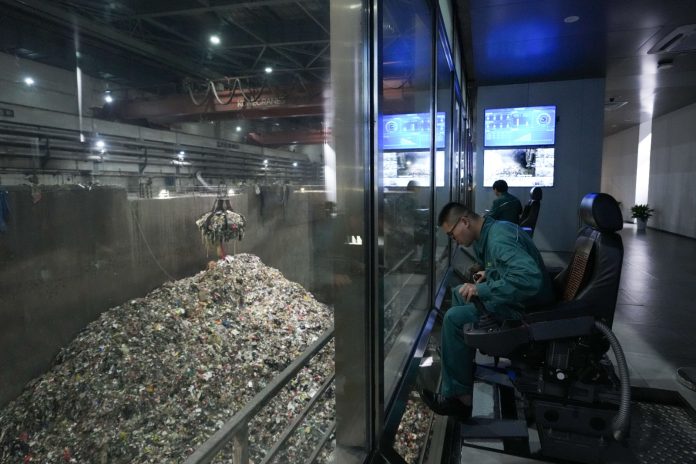 CHANGSHA (CINA) (XINHUA/ITALPRESS) – Degli addetti azionano bracci meccanici per trasportare i rifiuti nell’inceneritore presso il parco per la tutela ambientale di Heimifeng a Changsha, nella provincia dello Hunan, nella Cina centrale, il 22 aprile 2026. Il sito rappresenta un parco industriale dedicato alla tutela ambientale su larga scala, situato nel distretto di Wangcheng a Changsha. La capacità giornaliera di trattamento dei rifiuti domestici del parco raggiunge le 10.000 tonnellate, mentre quella dei fanghi arriva a 1.000 tonnellate. Attraverso l’incenerimento dei rifiuti, genera ogni anno oltre 1,7 miliardi di chilowattora di elettricità verde e riduce le emissioni di anidride carbonica di oltre 1,2 milioni di tonnellate l’anno. Inoltre, in qualità di base provinciale per la divulgazione scientifica e l’educazione ambientale, dal 2021 il parco ha accolto più di 40.000 visitatori nelle giornate di apertura al pubblico, diffondendo tra il pubblico nozioni sulla raccolta differenziata e sull’utilizzo dei rifiuti solidi.
