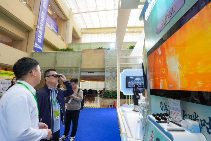 CHENGDU (CINA) (XINHUA/ITALPRESS) – Un partecipante prova un dispositivo audiovisivo interattivo durante la 13esima edizione della China Internet Audio and Video Convention a Chengdu, nella provincia sud-occidentale cinese del Sichuan, il 15 aprile 2026. L’evento ha preso il via qui oggi, presentando una serie di forum tematici, eventi di presentazione, proiezioni cinematografiche e altre attività.