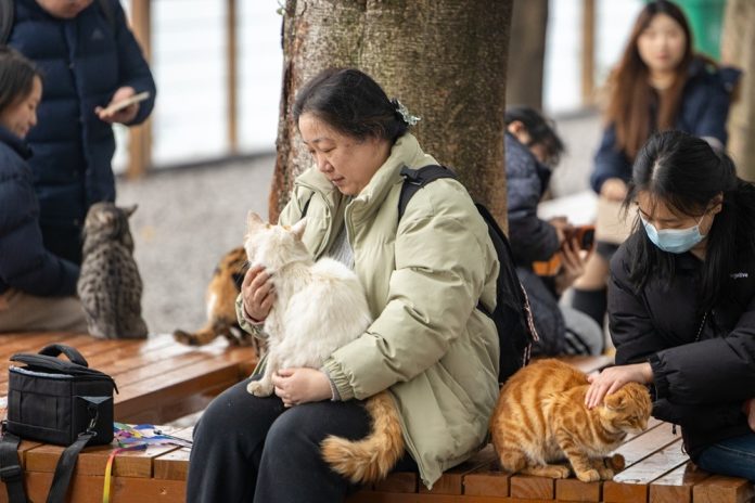 HARBIN (CINA) (XINHUA/ITALPRESS) – Alcuni visitatori interagiscono con i gatti in un parco a tema felino nel distretto di Nan’an, a Chongqing, nel sud-ovest della Cina, il 14 gennaio 2026. Dal 2025, un terreno inutilizzato lungo il fiume Yangtze nel distretto è stato trasformato in un parco a tema dedicato ai piccoli felini. Con una superficie di 30.000 metri quadrati, il parco funge da rifugio per gatti randagi abbandonati o feriti.