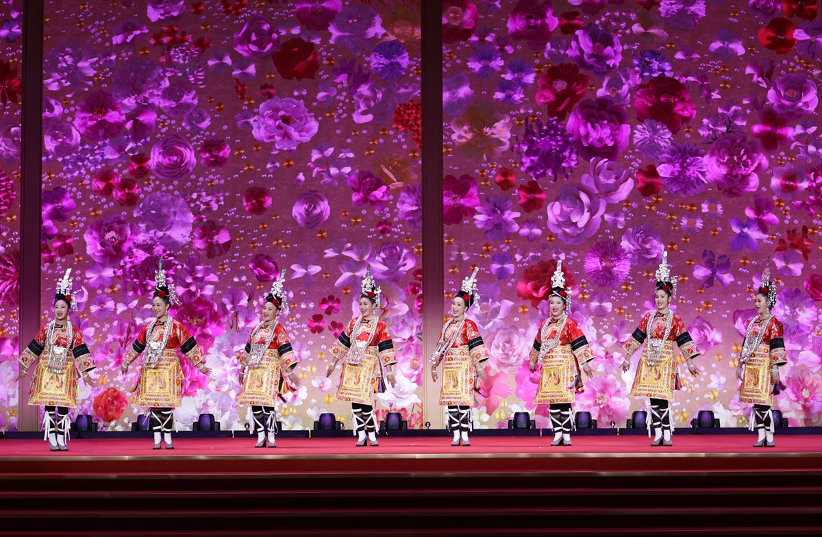 (260306) -- BEIJING, March 6, 2026 (Xinhua) -- Performers perform during a reception for International Women's Day in Beijing, capital of China, March 6, 2026. The All-China Women's Federation held a reception here on Friday to mark International Women's Day, which falls on March 8. (Xinhua/Zhang Yuwei)