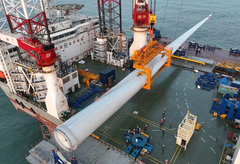 TANGSHAN (CINA) (XINHUA/ITALPRESS) – Questa foto, scattata da un drone il 13 gennaio 2026, mostra una delle pale della turbina mentre viene sollevata nel cantiere di un’unità di turbine eoliche offshore da 20 megawatt nelle acque costiere della provincia sud-orientale cinese del Fujian. L’unità è stata sollevata e installata con successo.