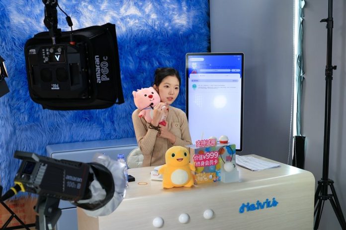 SHENZHEN (CINA) (XINHUA/ITALPRESS) – Una livestreamer promuove giocattoli basati sull’intelligenza artificiale presso la sede della società di giocattoli Haivivi a Shenzhen, nella provincia meridionale cinese del Guangdong, il 31 ottobre 2025. Essendo un importante base produttiva di giocattoli in Cina, il Guangdong ha sfruttato i propri vantaggi industriali per accelerare lo sviluppo dell’IA nella relativa manifattura. I giocattoli basati sull’IA presentano un’interazione uomo-macchina, forme di prodotto diversificate, vari scenari di applicazione e un ampio pubblico di riferimento.
