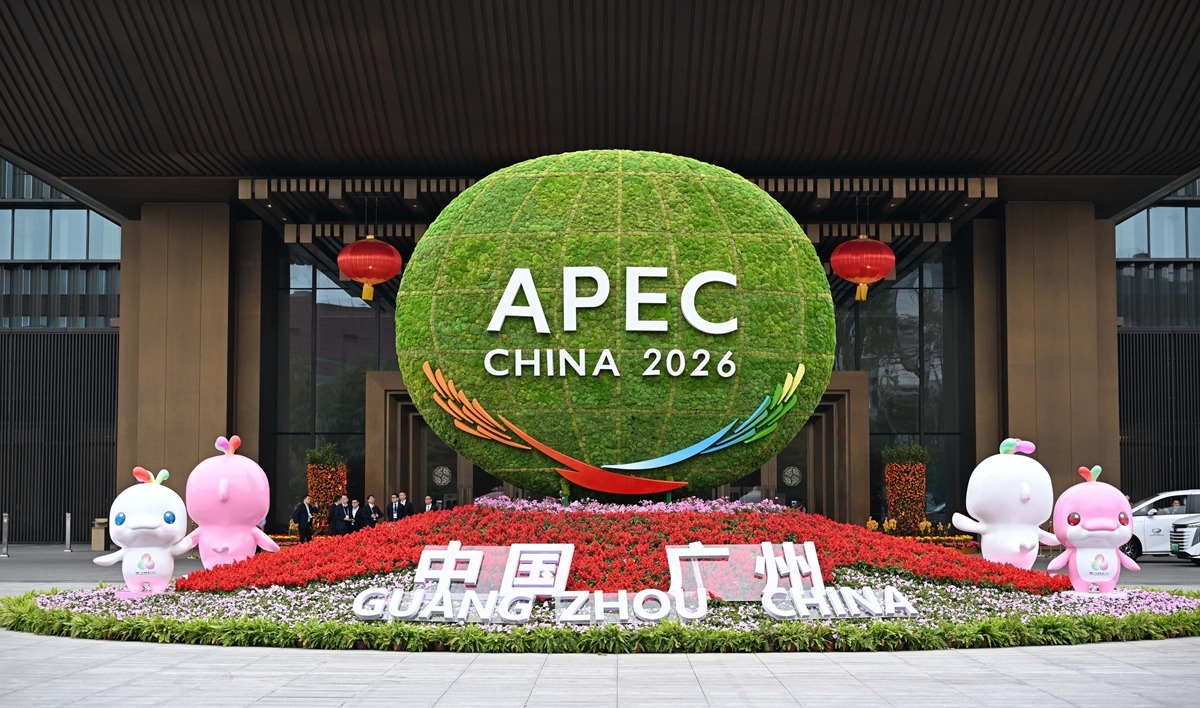 GUANGZHOU (CINA) (XINHUA/ITALPRESS) – Questa foto, scattata il 10 febbraio 2026, mostra una veduta esterna della sede della Prima riunione degli alti funzionari dell’APEC Cina 2026 a Guangzhou, nella provincia meridionale cinese del Guangdong. La sessione di apertura della riunione si è tenuta qui martedì.
