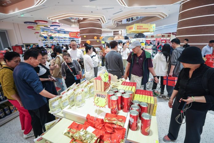 HAIKOU (CINA) (XINHUA/ITALPRESS) – Dei clienti scelgono i prodotti in un negozio duty-free di beni di consumo quotidiano per residenti dell’isola a Haikou, nella provincia meridionale cinese di Hainan, l’11 febbraio 2026. Il primo gruppo di questo tipo di negozi ha aperto mercoledì. A ciascun residente idoneo è concessa una quota annuale di shopping duty-free pari a 10.000 yuan (circa 1.437 dollari USA), senza limite sul numero di acquisti. La politica copre beni di prima necessità, inclusi alimenti e bevande specificati, prodotti chimici per uso quotidiano, articoli per la casa e forniture materno-infantili.