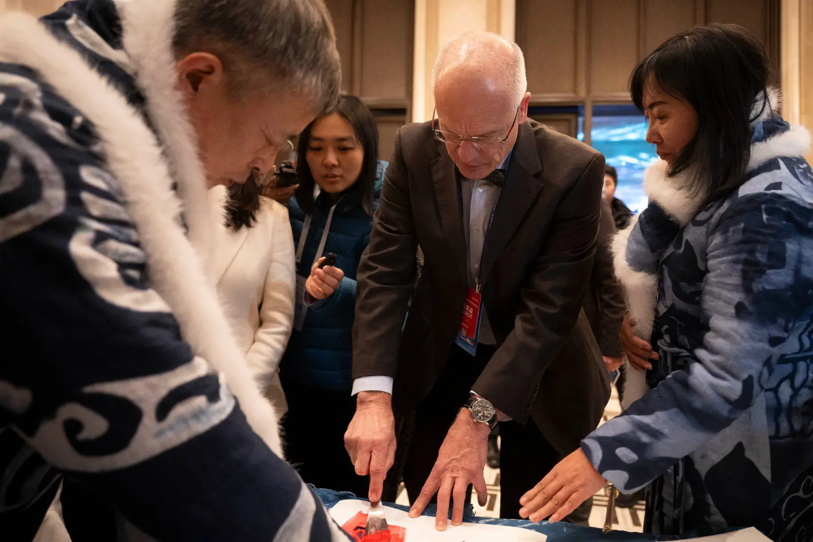 HARBIN (CINA) (XINHUA/ITALPRESS) – Un rappresentante prova a realizzare un’opera di patrimonio culturale immateriale durante la sessione principale del “Global Mayors Dialogue in Harbin”, tenutasi nell’omonima città della provincia nord-orientale cinese dello Heilongjiang, il 7 gennaio 2026.