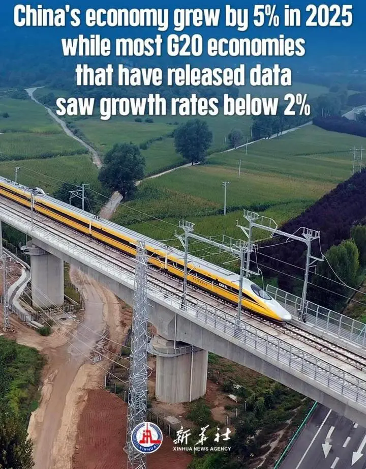 Nel 2025 il PIL cinese è cresciuto del 5% rispetto all’anno precedente. Tra le economie del G20 che hanno finora pubblicato i dati, la maggior parte ha registrato una crescita inferiore al 2%, con Germania, Francia e Italia che hanno segnato tassi inferiori all’1 %.