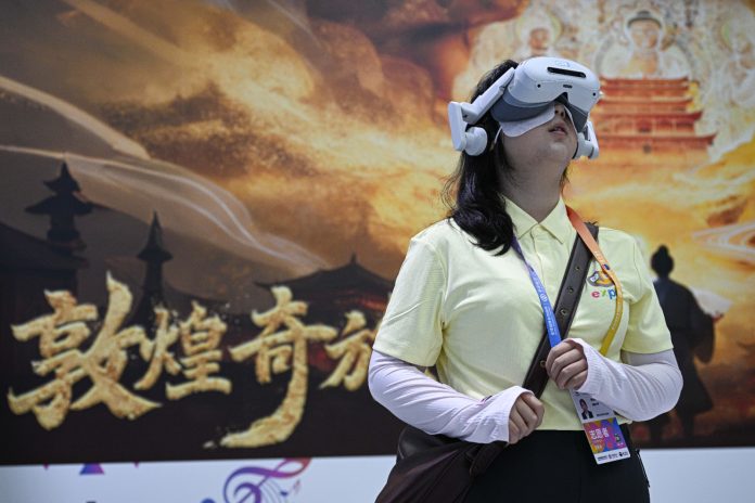 HAIKOU (CINA) (XINHUA/ITALPRESS) – Una visitatrice prova un dispositivo per la realtà virtuale durante la sesta edizione della China International Consumer Products Expo (CICPE) a Haikou, nella provincia meridionale cinese di Hainan, il 14 aprile 2026. Alla fiera, attualmente in corso, è esposta un’ampia gamma di prodotti di consumo innovativi basati sulla tecnologia dell’IA, che abbraccia diversi settori, tra cui l’interazione intelligente, i dispositivi indossabili e la sanità smart.