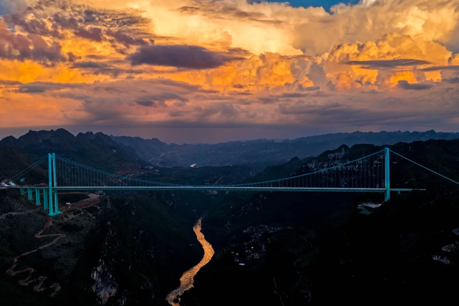 Situato nella zona montuosa della Cina sud-occidentale, il ponte sospeso a traliccio d’acciaio è un progetto chiave sull’autostrada Liuzhi-Anlong, nel Guizhou. È stato aperto al traffico il 28 settembre 2025.